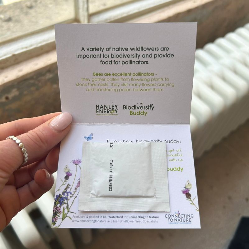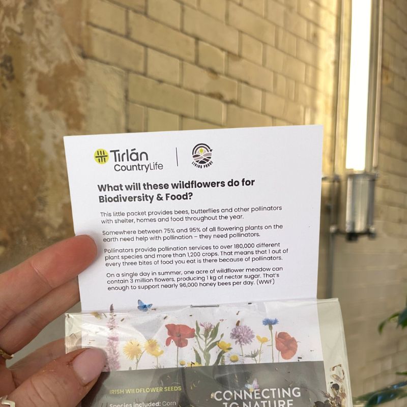 ‘We recently hosted the official opening of our new Tirlán CountryLife concept store in Bunclody, and were looking for a small gift to provide customers with something to take home, which would have a meaningful impact and align to our brand values. Connecting to Nature’s wildflower seed packs were the perfect solution. These one of a kind native seeds will not only give our valued customers something they can admire in their garden, but also support pollinators for years to come. Julie and the team in Connecting to Nature were a dream to deal with, and we were able to customise the design of our packs to our own branding.’