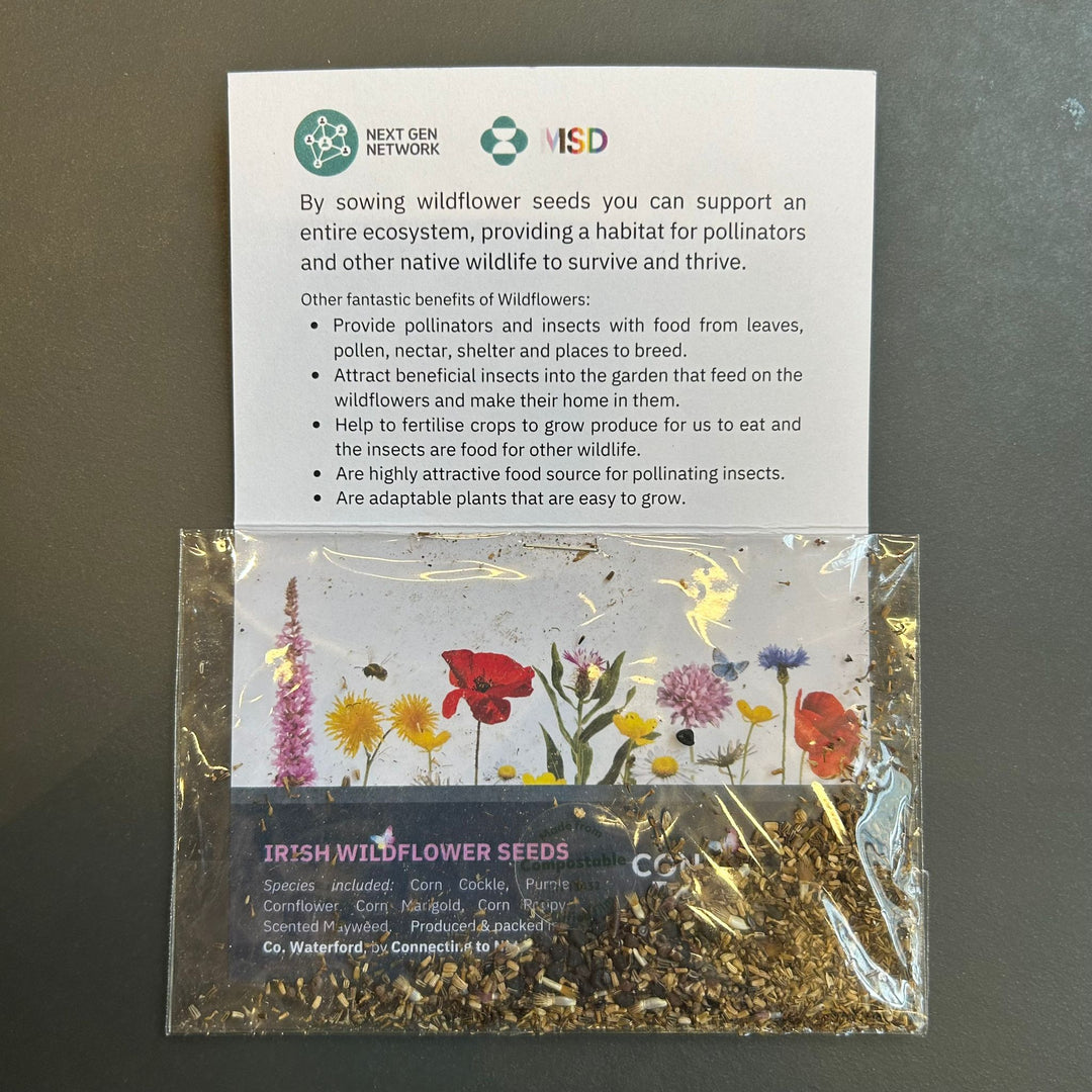 Each packet contains easy-to-grow, Irish native wildflower seeds, sourced from our farm in Co. Waterford, where we have 30 acres of seed production.